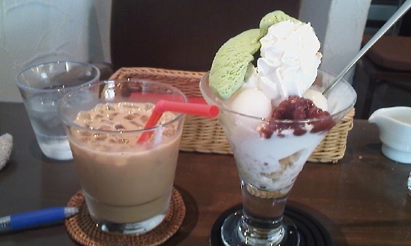 美味しい!! ギザヤバスな暑さですね。夕方は可児の西可児地域は結構雨が降り、涼しくなりましたが、それまではとんでもない暑さでした。写真は私の隠れ家のアイスコーヒーと抹茶パフェです。抹茶パフェはメッチャ食べたかったんですが、さすがに短パン、Tシャツのむさ苦しい男が1人でパフェ食べてる姿を見せられないでしょ。だからお客さんの少ない時に食べようと狙ってたら、今日がその日でした。とても美味しくて幸せな気分になりましたとさ。