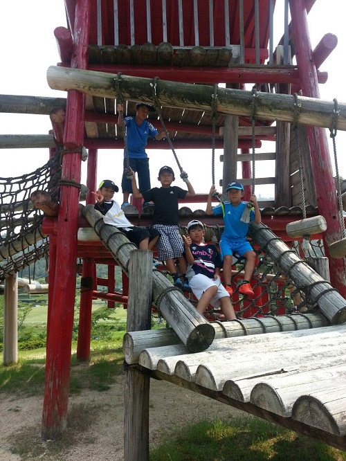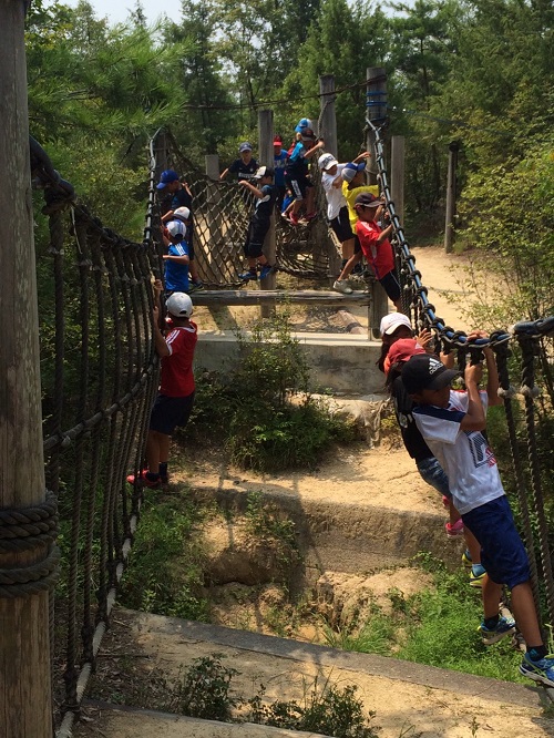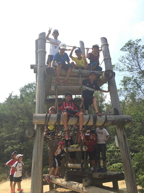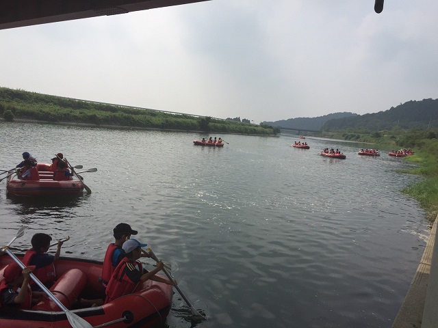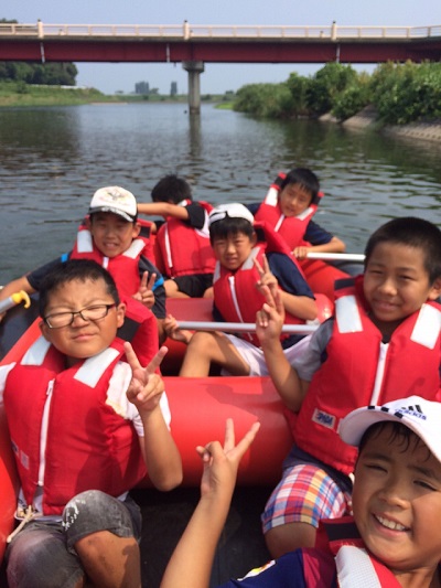サマーキャンプ2015in彦根 ③ 2日目午前 リバーボート彦根荒神山少年の家の名物です。しっかりと説明聞いて(?) 皆でかっこよく しゅっぱつ 午前で退所して、アスレチックへ移動! 希望ヶ丘のアスレチックへ! 2日間の参加、ありがとうございました!2日目は朝4時から起きて大騒ぎしてくれた子供たち。初めて朝5時に宿舎の方からお叱りを受けました。こんな早朝に叱られるのはキツかった(笑)来年はどこに行けるのか?また楽しみです(^^)v