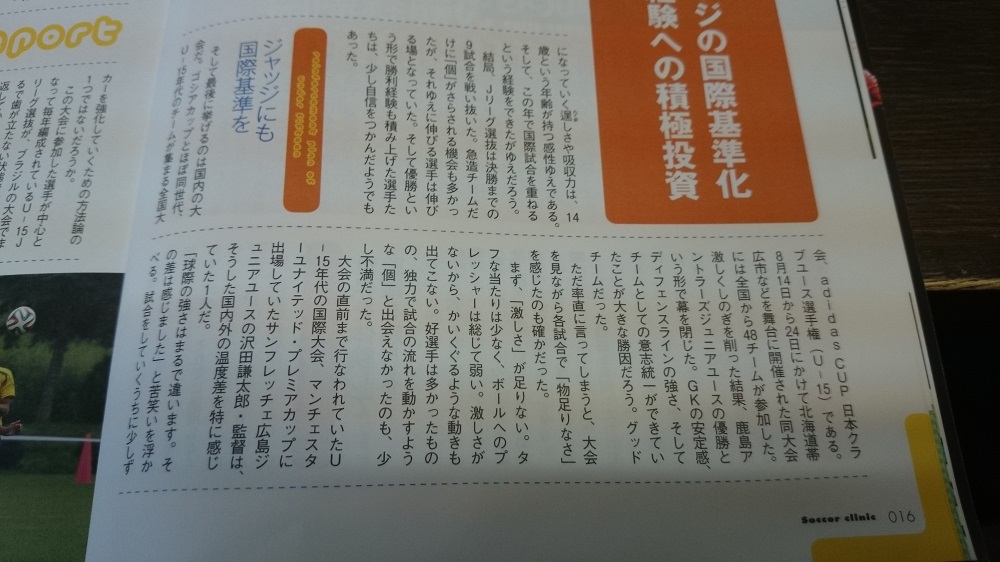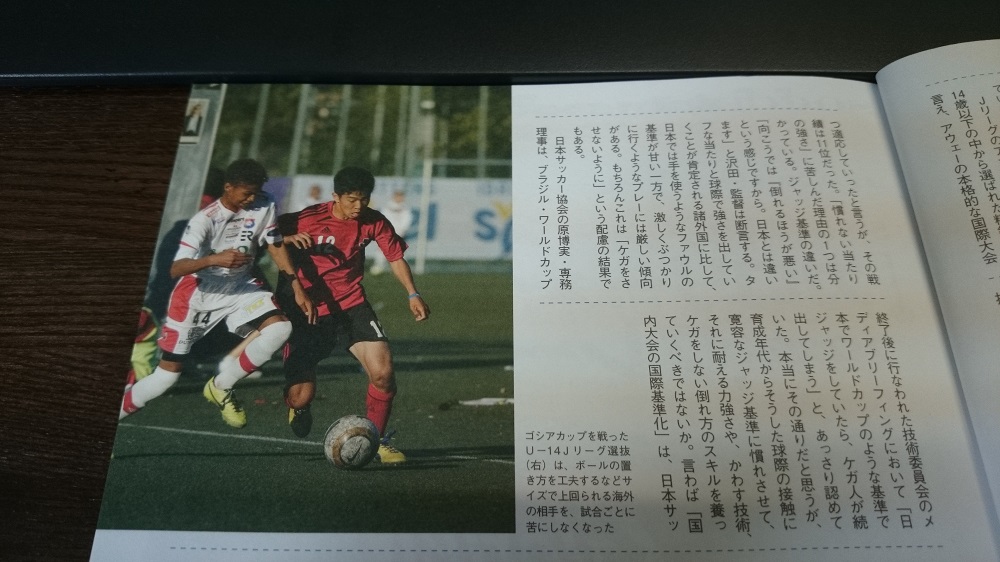 ようやく・・ 下の記事は、サッカークリニック11月号より 10年前からずっと思ってたこと。私が修業した南アフリカでは、一家を背負って15歳の選手がプレーする。そりゃ、球際1つの激しさにその思いは出てくる。自分がプロにならなければ、一家が・・。帰国してすぐ、日本のジュニアの試合を観て感じたこと。倒れすぎやし、それを審判もファウルにしすぎだし。ジュニアユース年代でもその判定や実態に非常にストレスを感じたことがあった。自分の求める激しさはフットボールの世界では基準であると常に信じていた。ようやくこんなことを感じて記事にしてくれる記者が出てきてくれた。また日本サッカー協会も気づいて変化させていくようだ。原専務の『日本でワールドカップ基準でジャッジしたらケガ人が続出してしまう』との意見は絶対に違うと思う。何を怖気づいているのか。過保護なだけで日本人選手は本当は球際闘えるんだよ。1つの球際観て倒れた選手がいても、観客がそれに対してかわいそうとかファウルだろとか言わずに倒れた選手に問題がある、そんなことが普通になってきたら、日本のサッカーの激しさも増して、その激しさに耐えうる攻撃の選手が出てきた頃に少しは世界と闘えるようになってるかな。