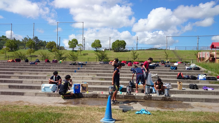 中1遠征にて 7月20日にプロセスリーグというその名の通り、過程にこだわるクラブの交流戦に参加してきました。今年は1日だけの参加でしたが、たくさんの拘りをもったクラブと肌で何かを選手たちが感じたと思います。前日の道具確認でビブスの枚数を数え忘れて道具管理が出来なかったり、清潔に保ちたいクーラーボックスの中に土のついたジャグタンクを入れたり、帰りのバスの荷物整理の置く場所などと、まだまだこれからチームの為に【気づき】が必要な10期生中1です。 今日は青シャツX白パンツX青ソックスの珍しい配色(^^) しかし私が何も言ってないのに、使わない方のユニフォームを畳んだりできます。 そしてお母さんが愛情込めて作ってくれた弁当を落としてしまった、でも食べれるとおかずを洗いながら食べる猫チャンもいました。私の時代ならともかく(笑) 逞しい男(いやオスネコ)に成長してますね。まだまだ指摘しないといけない部分や目をつぶって失敗させないといけない部分がたくさんあります。しかし自ら考え、自らやる、自ら過ごす力を10期生という集団で習得しようと頑張る場面もチラホラ観えてます。